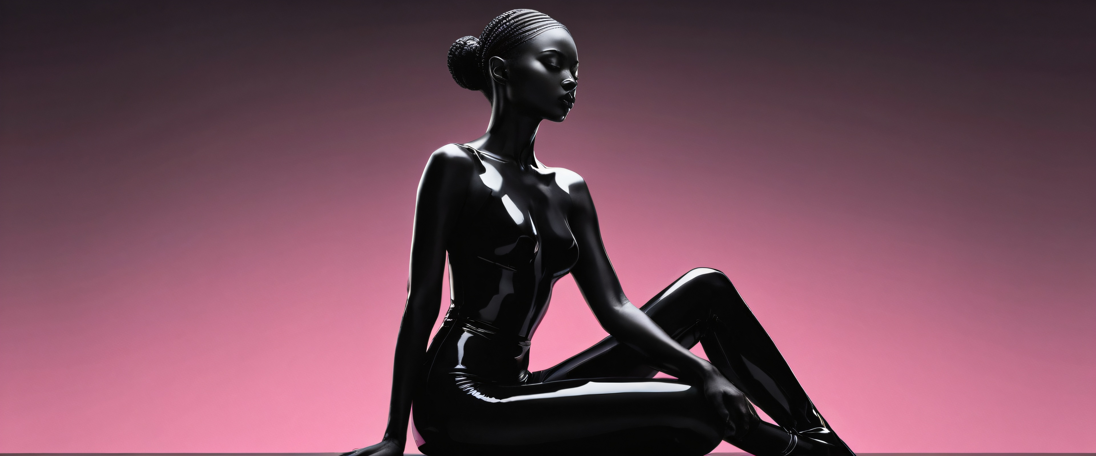 A breathtaking desktop wallpaper of Seated Female Figure, Perfectly clean vast pure void with extreme depth of field, creating a sense of isolation and contemplation, Award-winning digital art, pristine clarity, intricate details and textures, SLEEK DARK MODE AESTHETIC: Deep perfect blacks, striking crisp contrast, and elegant luminescent accents to create a dramatic and sophisticated atmosphere, Dominant Pink Tone with Soft Whites and Dark Grays for a balanced mood, 21:9 ultrawide panoramic aspect ratio, epic wide shot, elegant low-key lighting, deep perfect blacks, striking contrast, sleek dark mode aesthetic, luminescent accents, deep rich colors, award-winning digital art, epic breathtaking scale, stunning visual impact, perfect composition, highly textured surfaces, intricate micro-details, physically based rendering, macOS wallpaper aesthetic, masterpiece, highest quality, highly detailed, 8k resolution.
