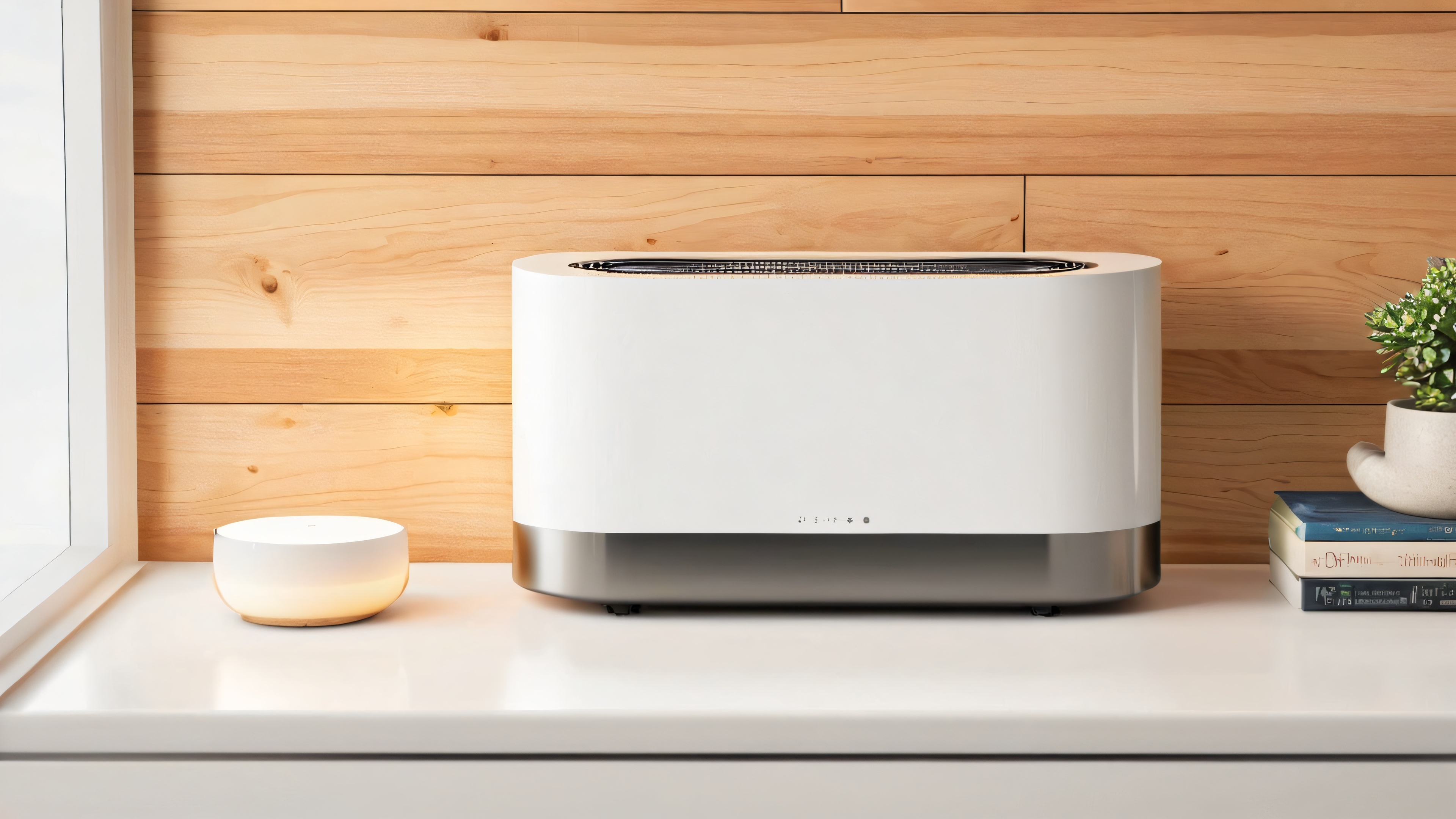 This stunning 4K wallpaper showcases a modern dehumidifier seamlessly integrated into a compact tiny house. The stainless steel accents and subtle LED display add a touch of industrial chic to the well-lit interior, featuring exposed wooden beams and tasteful decorative items. The warm, soft lighting highlights the dehumidifier’s design and the cozy atmosphere, with a palette of muted industrial tones and pops of bright color from the decorative items and LED display.