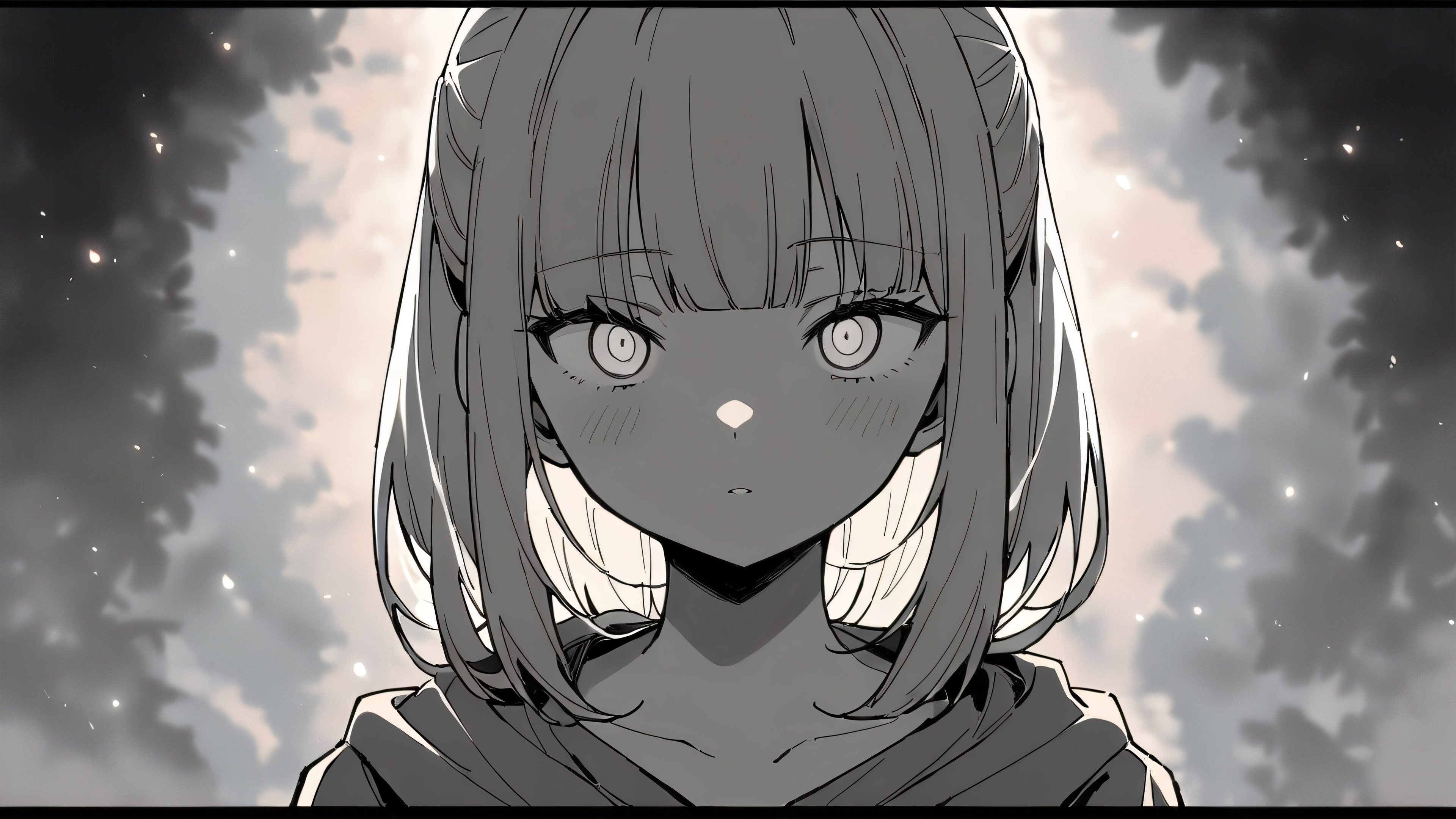 1girl, fern, sousou no frieren, solo, masterpiece, best quality, very aesthetic, absurdres, highly detailed, looking at viewer, perfectly clean vast pure void, extreme depth of field, [‘grayscale’, ‘beige’], 16:9 aspect ratio, bright and airy, ethereal lighting, beautiful sky, cinematic lighting, vivid colors