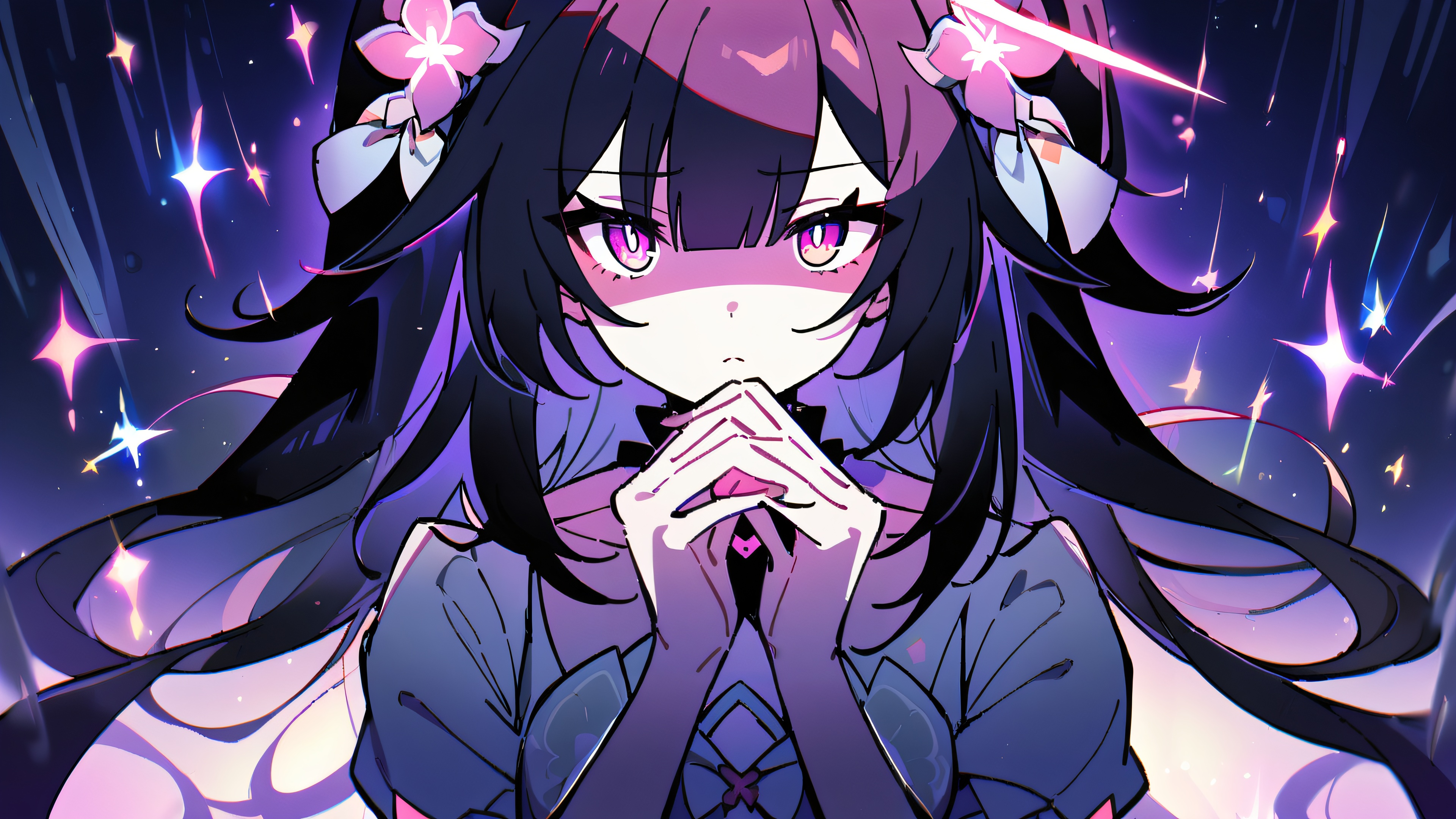 1girl, sparkle, honkai: star rail, solo, masterpiece, best quality, very aesthetic, absurdres, highly detailed, looking at viewer, perfectly clean vast pure void, extreme depth of field, perspective, [‘Pastel’, ‘Delicate’], 16:9 aspect ratio, elegant low-key lighting, striking contrast, deep perfect blacks, night scene, glowing lights, dramatic shadows
