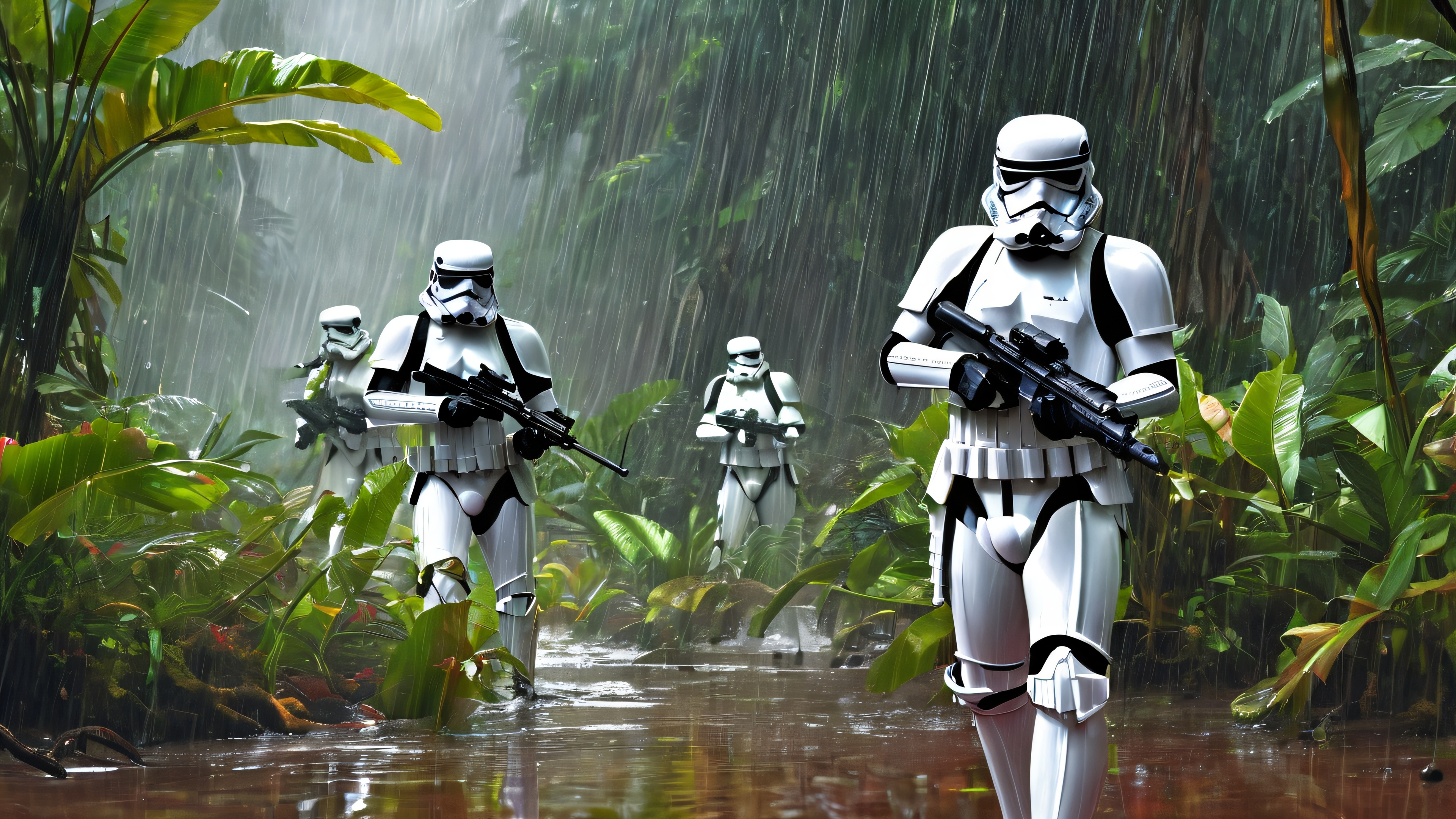 4K Stormtroopers in Ethereal Jungle Battle Desktop Background Free Download: