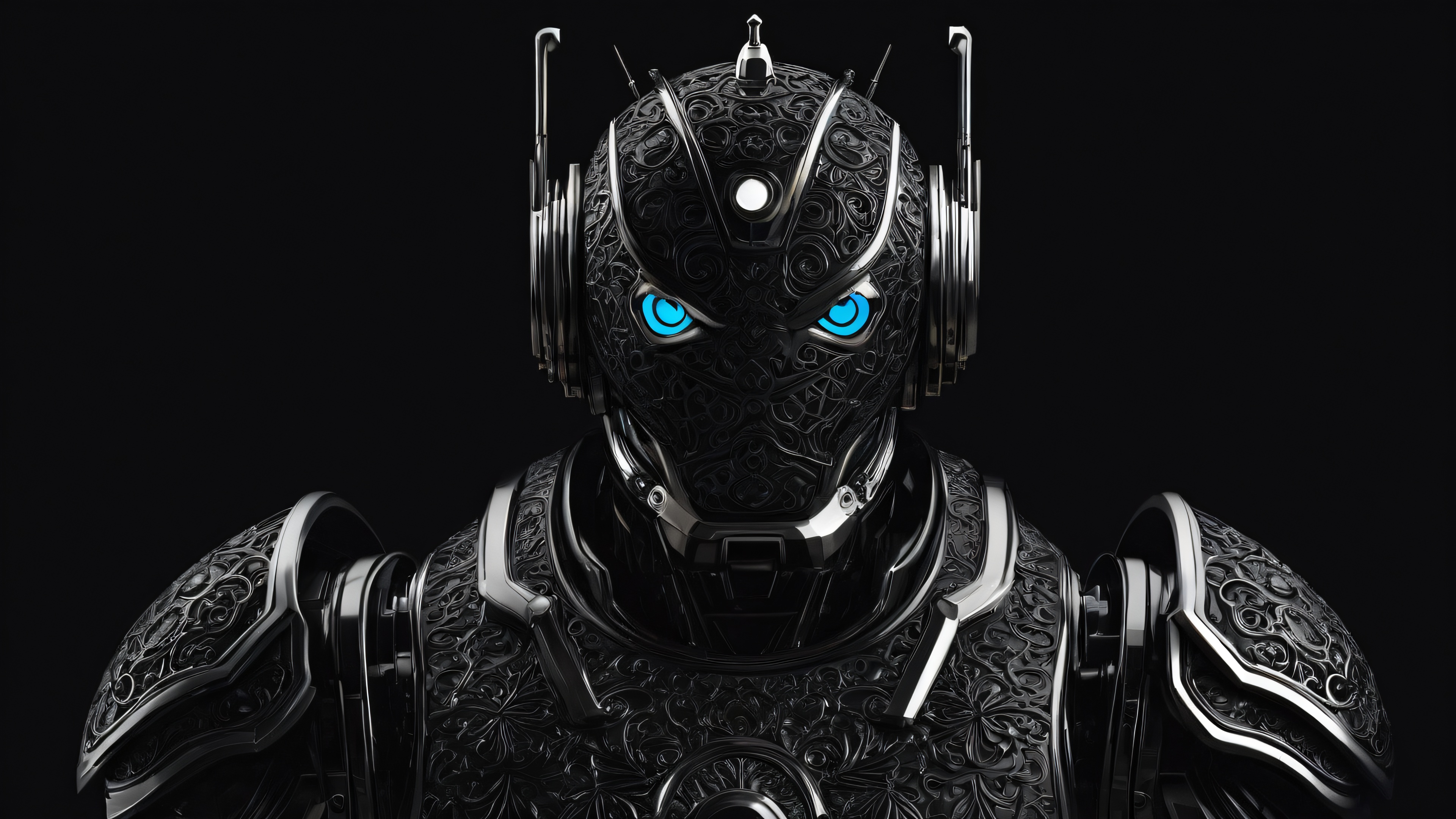 A breathtaking desktop wallpaper of Cookie Robot God, A perfectly clean vast pure void, extreme depth of field, creating a sense of surrealness and wonder., Award-winning digital art with pristine clarity and precise attention to detail, showcasing a unique blend of fantastical and humorous elements., Sleek dark mode aesthetic with deep perfect blacks, striking crisp contrast, and elegant luminescent accents, evoking a sense of mystery and intrigue., #FFC400 #8B9467 #444444, 16:9 aspect ratio, elegant low-key lighting, deep perfect blacks, striking contrast, sleek dark mode aesthetic, luminescent accents, deep rich colors, award-winning digital art, epic breathtaking scale, stunning visual impact, perfect composition, highly textured surfaces, intricate micro-details, physically based rendering, macOS wallpaper aesthetic, masterpiece, highest quality, highly detailed, 8k resolution.