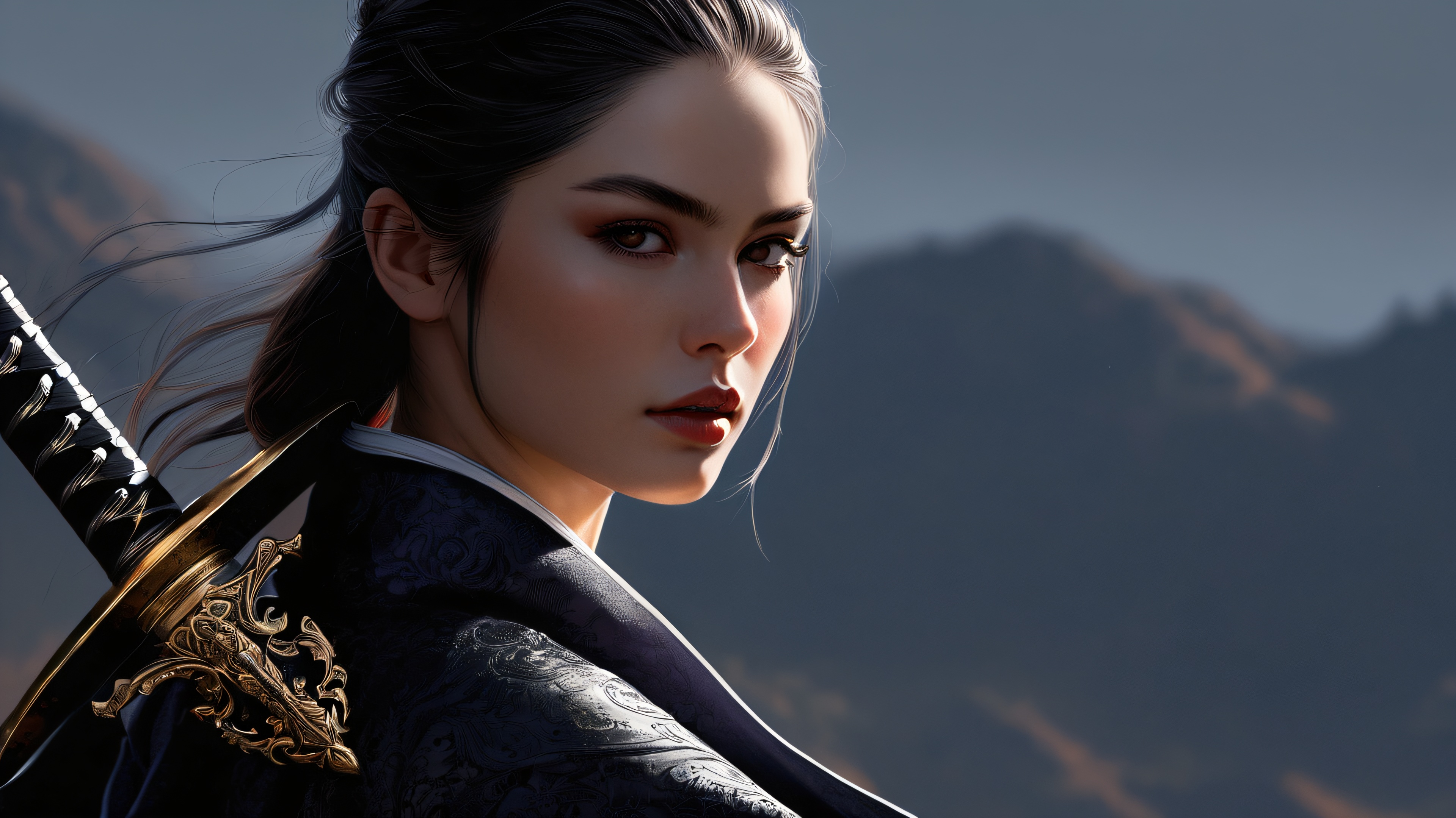 4K Epic Sword Maiden in Darkness Desktop Background Free Download: