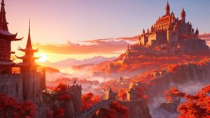 Epic Fantasy Crimson Cityscape Wallpaper Free Download: This breathtaking 4K desktop wallpaper depicts a sprawling, […]