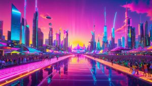 Neon Futurism Festival Wallpaper – Vibrant 4K Cyber Scene Free Download: The wallpaper features a […]
