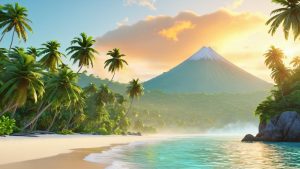 Golden Dawn Tropical Oasis 4K UHD Wallpaper Free Download: A tranquil paradise featuring lush vegetation, […]