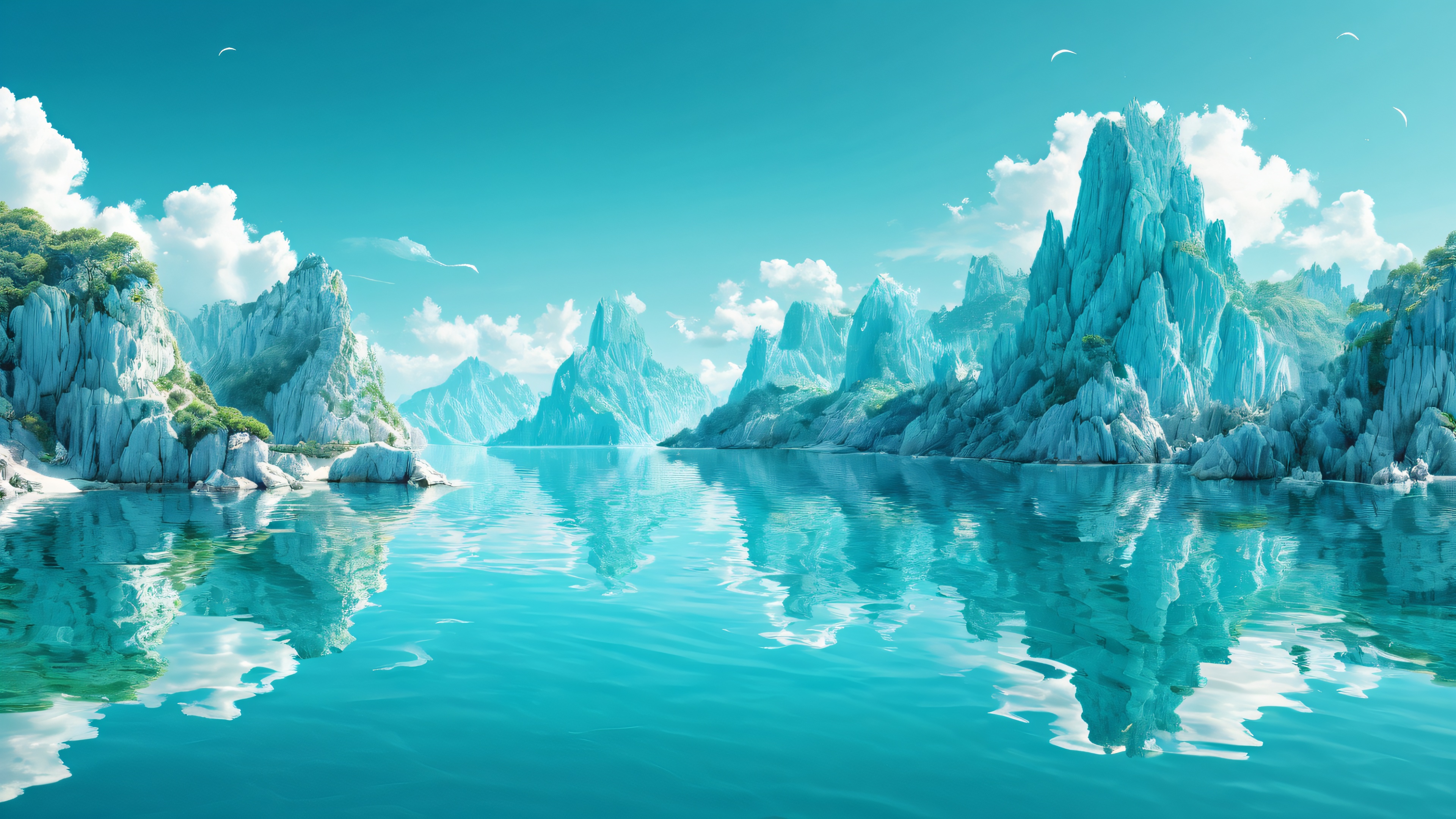 Turquoise Archipelago Oasis Aesthetic PC Wallpaper Free Download:
