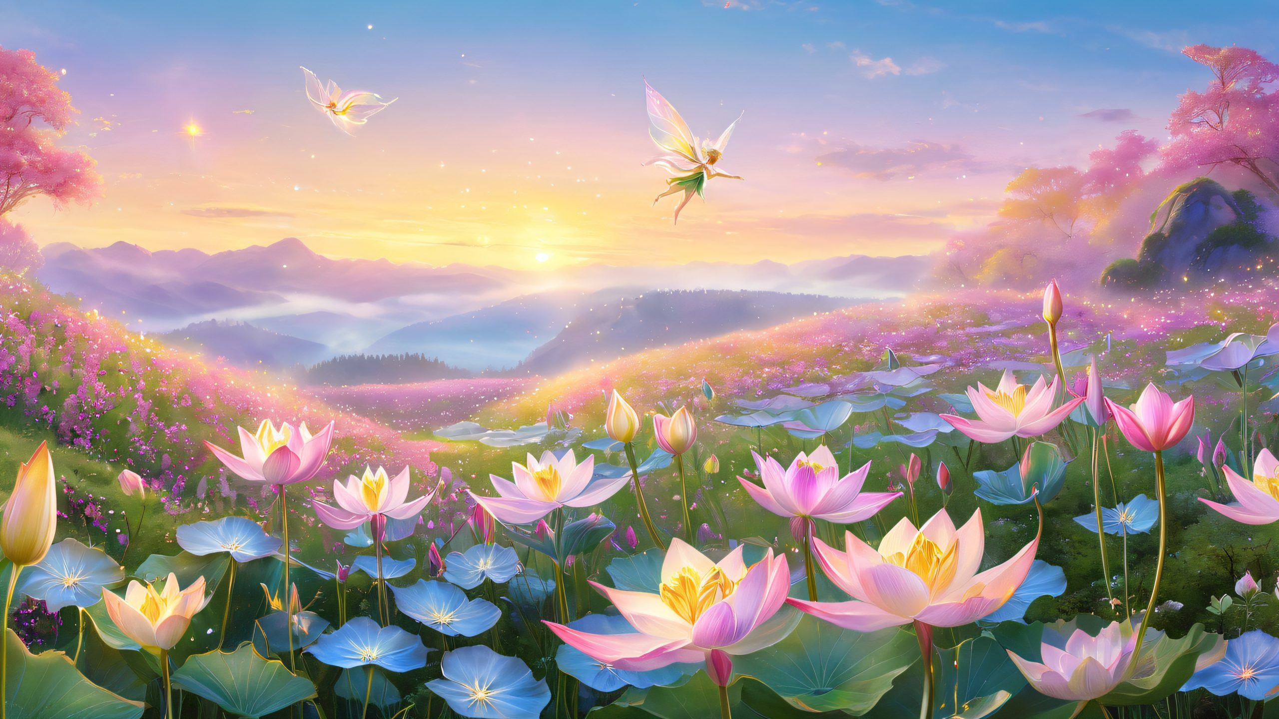 This enchanting 4K wallpaper features a dreamlike scene of elves gathering amidst a vibrant meadow of glowing flowers. The delicate, iridescent-skinned elves unfold their ethereal wings like lotus petals, surrounded by a soft, velvety moss that glows with a gentle, lunar light. The air is filled with the sweet scent of enchanted pollen, and the soft hum of mystical energy.