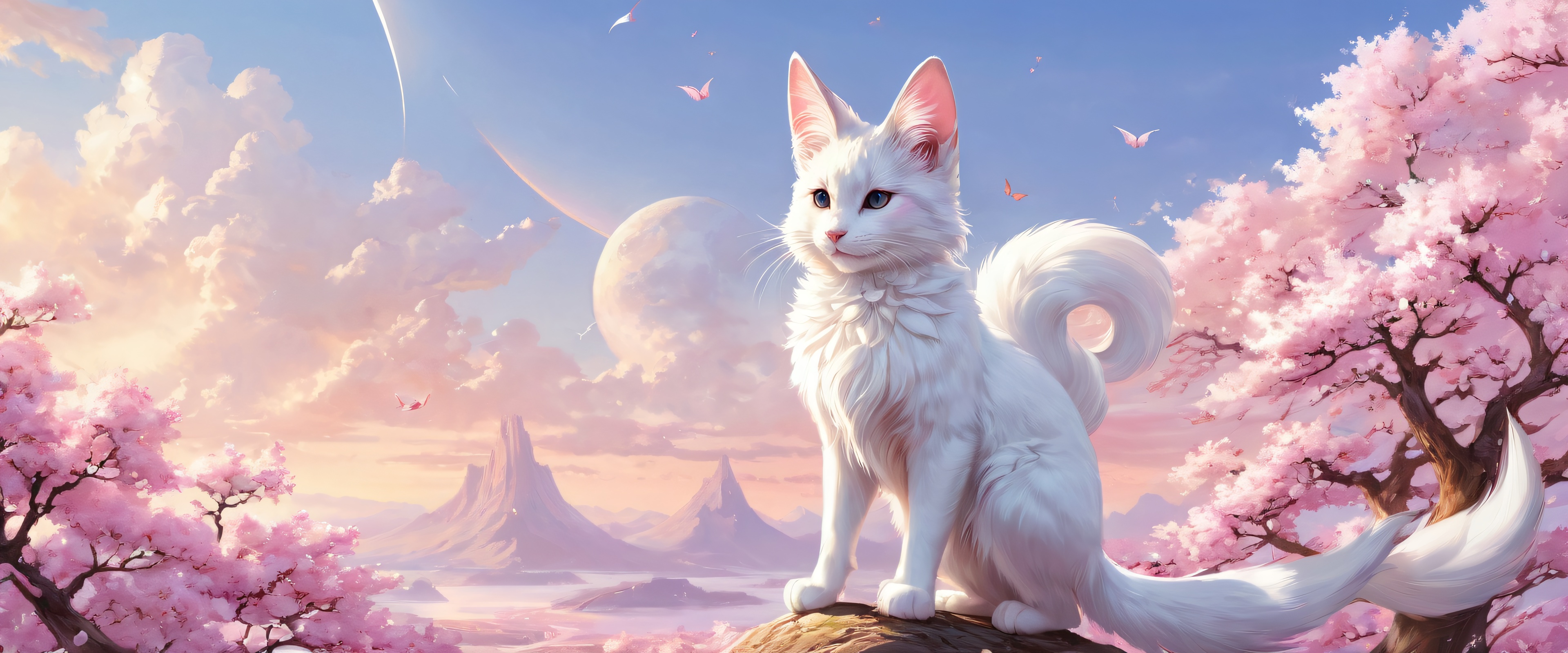 A breathtaking desktop wallpaper of Kirichi with Animal Ears and Tail, Perfectly clean vast pure void, extreme depth of field, highlighting Kirichi’s majestic presence, Award-winning digital art, pristine clarity, showcasing a vibrant and whimsical world, Ethereal lighting, radiant brilliant colors, ray-traced reflections, and pristine clarity, creating a bright and airy atmosphere, #FFFFFF (White) with subtle hints of #FF69B4 (Soft Pink) for the ears and tail, 21:9 ultrawide panoramic aspect ratio, epic wide shot, ethereal lighting, radiant, brilliant colors, ray traced reflections, pristine clarity, award-winning digital art, epic breathtaking scale, stunning visual impact, perfect composition, highly textured surfaces, intricate micro-details, physically based rendering, macOS wallpaper aesthetic, masterpiece, highest quality, highly detailed, 8k resolution.