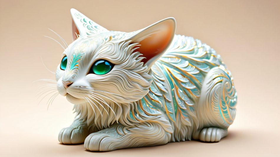 This enchanting 4K wallpaper features a magnificent, Lagomorph-like creature standing amidst a mystical, mist-shrouded clearing within a dense, ancient forest. The creature’s delicate skin tone and fluffy tail are contrasted by the towering trees that seem to be woven together by the fabric of the cosmos. Soft, diffused sunlight filters through the misty canopy above, casting a warm, golden glow over the entire scene. The lighting is subtle yet rich, with hints of iridescent colors dancing across the creature’s fur.