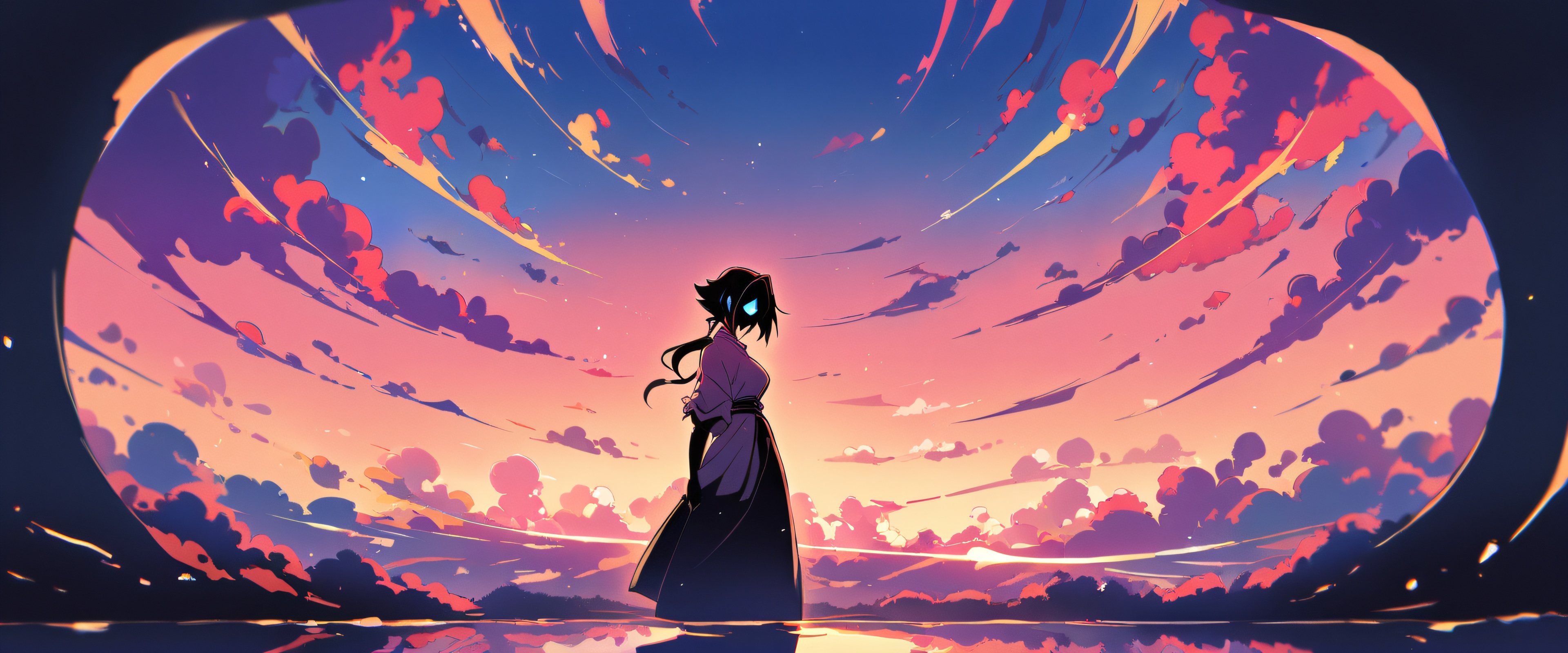 Breathtaking portrait of Yoruichi Shihouin in stunning high definition. The anime’s finest moments come to life as she gazes directly at the viewer from amidst a kaleidoscope of vibrant pastels and warm tones. A vast, pure void serves as the backdrop, adorned with a subtle plaid pattern. The extreme depth of field creates an immersive experience, drawing the eye to her captivating features. This 21:9 ultrawide panoramic masterpiece is a true work of art.